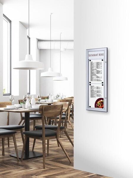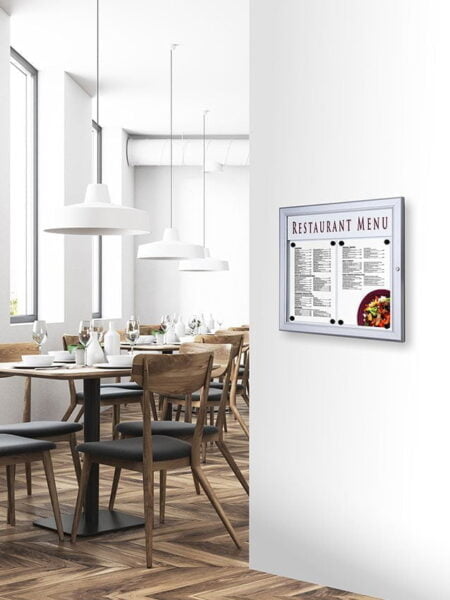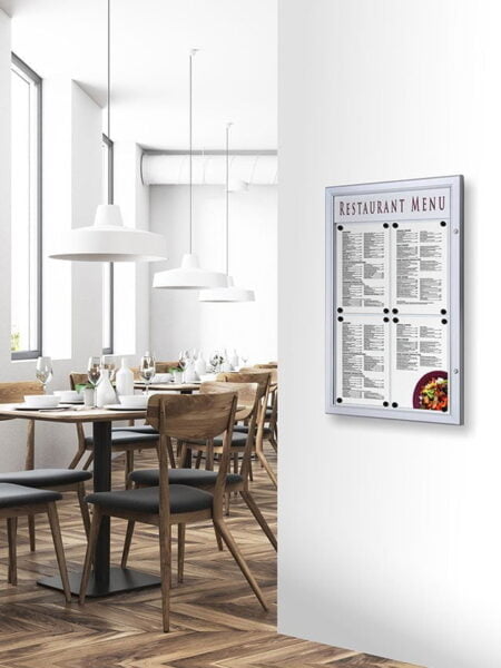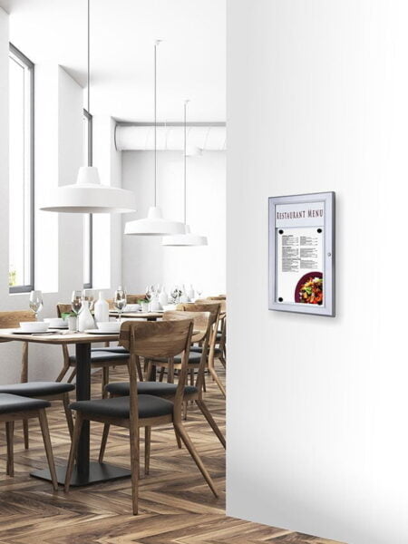 Gablota na menu A4 – Gablota na menu wykonana z najwyższej jakości materiałów idealna dla restauracji i hoteli. Wysoka odporność i rewelacyjny wygląd.