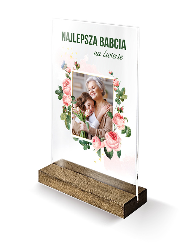 Statuetki dla Babci z Własnym ZdjęciemChcesz sprawić babci wyjątkowy prezent, który będzie pamiątką na lata? Nasze personalizowane statuetki dla babci z własnym zdjęciem to idealny wybór! Wykonane z wysokiej jakości plexi o grubości 3 mm, z precyzyjnym drukiem UV, Twoje zdjęcie będzie wyglądało jak żywe, a całość osadzona na solidnej drewnianej podstawie doda elegancji i stabilności. Format 21 x 14,8 cm Dlaczego nasze statuetki dla babci to doskonały prezent?
