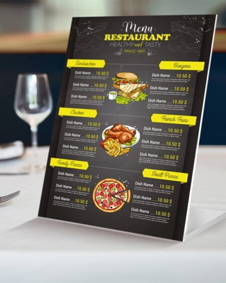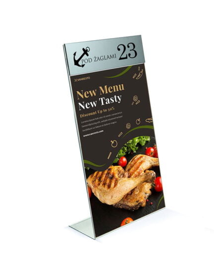 Stojak na menu A3 – stojaki na menu typ L wykonane z najwyższej jakości materiału z dowolnym drukiem UV klienta.