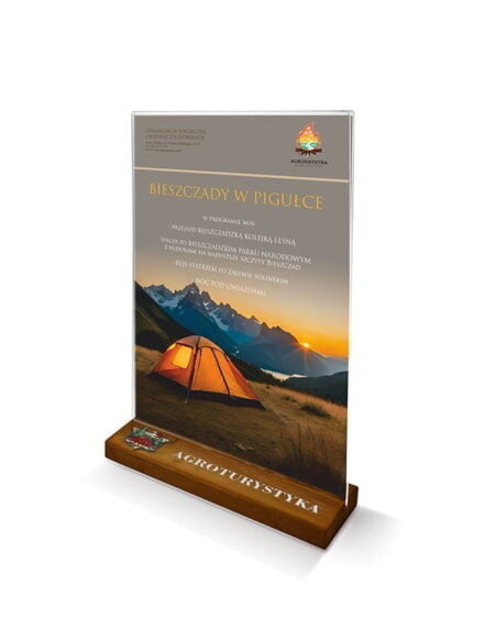 - Stojak informacyjny A5 z drewnianą podstawą z logo Cena:31.17 zł