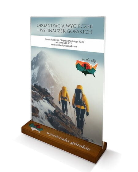 - Stojak informacyjny A4 z drewnianą podstawą z logo Cena:43.68 zł