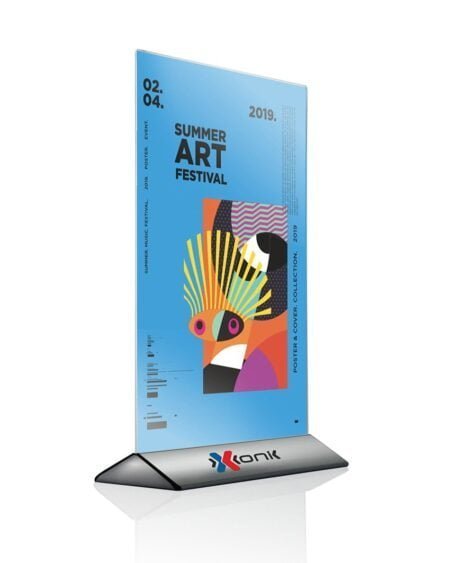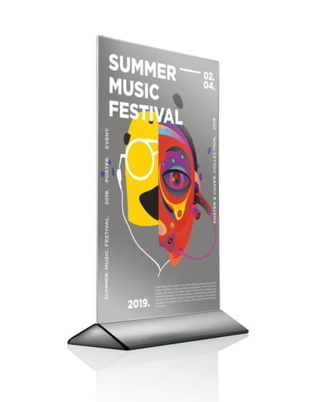 Dwustronny stojak akrylowy idealnie sprawdzi się do postawienia na ladzie, stole lub w recepcji w różnych lokalach przestrzeni publicznej. Lekka podstawa o nowoczesnym wyglądzie zapewnia stabilność.