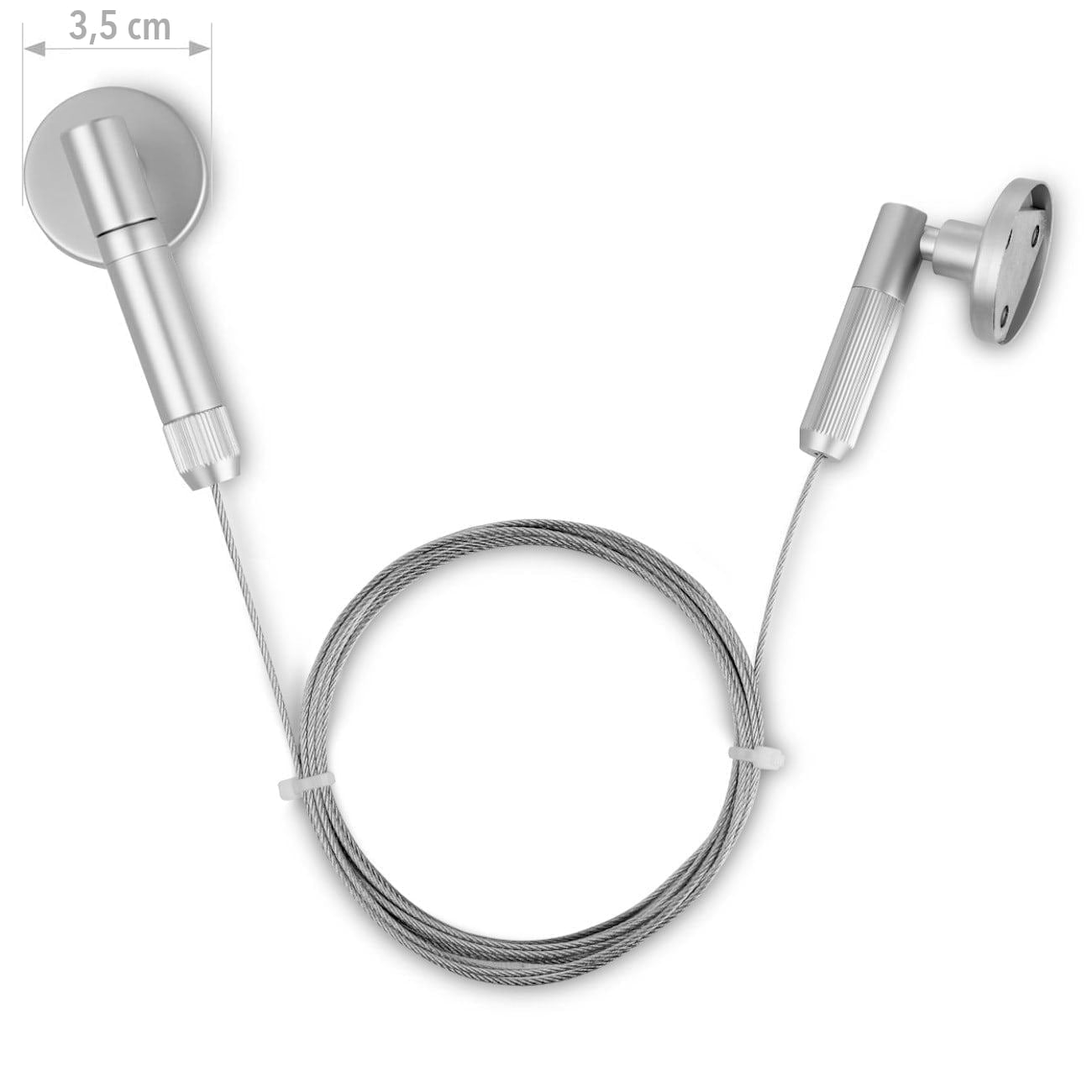 Zestaw zawiera: 2 uchwyty wykonane z aluminium, stalową linkę o długości 300 cm.