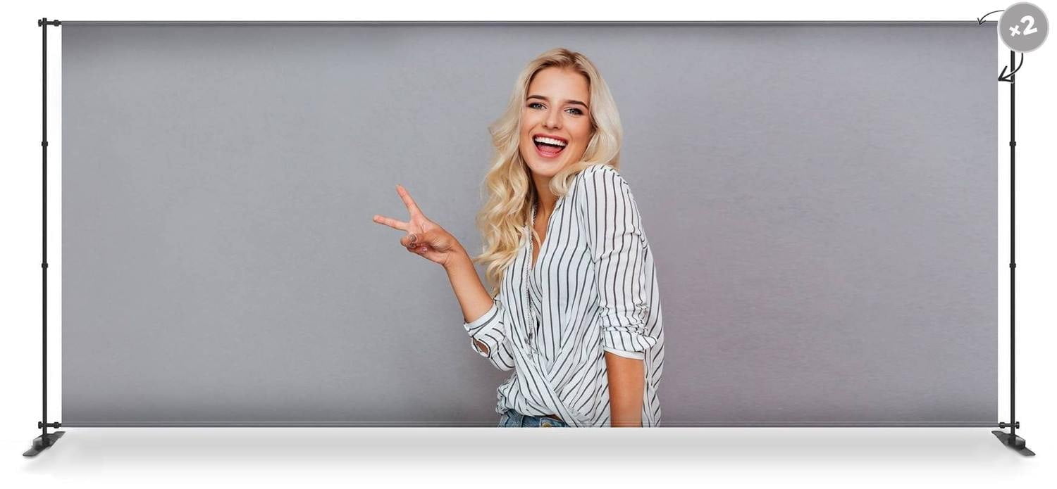 Versum XL to ścianka posiadająca stelaż wykonany ze zdecydowanie grubszych rurek. Ścianki te stają się coraz bardziej popularne dzięki swojej prostocie, stabilności i łatwości w transporcie. Konstrukcja działa na zasadzie rurek teleskopowych, dzięki czemu rama jest regulowana i może uzyskiwać różne wymiary. Aby zamontować wydruk, należy wykonać tunel w banerze i wsunąć w dolną i górną belkę.