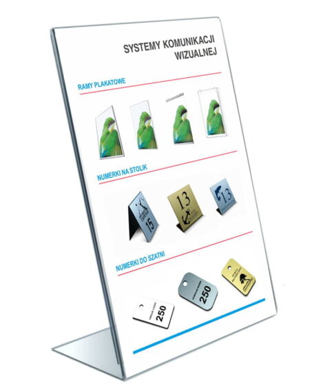 Stojak informacyjny A5 ( A5 / 148 x 210 mm ) – stojaki na menu typ L wykonane z najwyższej jakości plexi Akrylon XT.